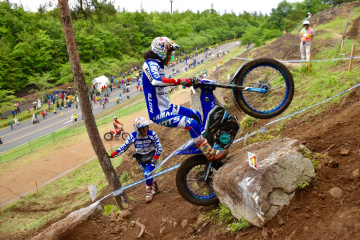 SS最初のセクションは、非常に滑りやすい巨大な丸太の上り下りが最大の見どころに。そして氏川選手は、このSSを減点1で切り抜け、最終セクションを走る前に優勝を決めた。一方、黒山選手と野崎選手と小川毅士選手はここを減点0で走り、3人の2位争いは最終セクションへ。ここで黒山選手と野崎選手は減点1、小川毅士選手は減点2となり、これにより黒山選手が2位、野崎選手が3位、小川毅士選手が4位となった。小川友幸選手は振るわずまさかの5位。これによりポイントランキングでは、依然としてトップを守る小川友幸選手に黒山選手がわずか1点差に迫り、7月中旬開催の北海道・和寒大会を迎えることになった。