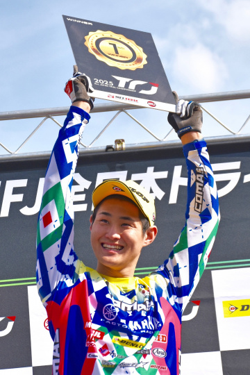 「昨年の九州大会は6位で、とても嫌な思い出があったのですが、そのときと同じ場所で優勝できたことにとても満足しています。今年から乗る新たなバイク、TY-E 3.0で初めて1位を取ることができたことも、本当にうれしいです。アシスタントをしてくれた田中裕人さん、ヤマハの皆さんに感謝しています。主催者の方々や応援してくれた皆さんも、ありがとうございました。次戦もテッペンに立てるように頑張りたいと思います!」