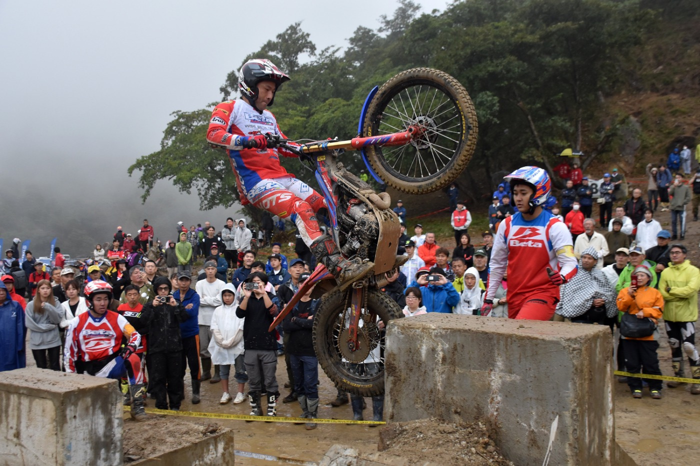 迎えたSSでの決戦では、小川毅士選手がSS1を減点1で切り抜け、同じく1点で走破した氏川選手とは8点差のまま。これにより最終セクションを待たず、じつに11年ぶりとなる小川毅士選手の優勝が確定した。黒山選手はSS1でクリーンを決め、これで氏川選手と同点。そして注目のSS2では、氏川選手がクリーンしたのに対して黒山選手は減点5となり、これで氏川選手が2位、黒山選手が3位となった。ポイントランキングでは、氏川選手が4ポイント詰めたが、依然として黒山選手がトップ。国際A級スーパークラスの第7戦終了時点ランキング上位10名のみが出場できる最終戦City Trial Japan大会で4位以内なら黒山選手、氏川選手が勝利して黒山選手が5位以下なら氏川選手が、シリーズタイトルを獲得することになる。
