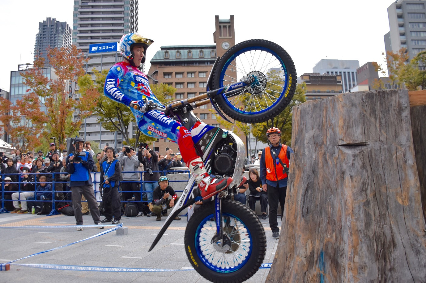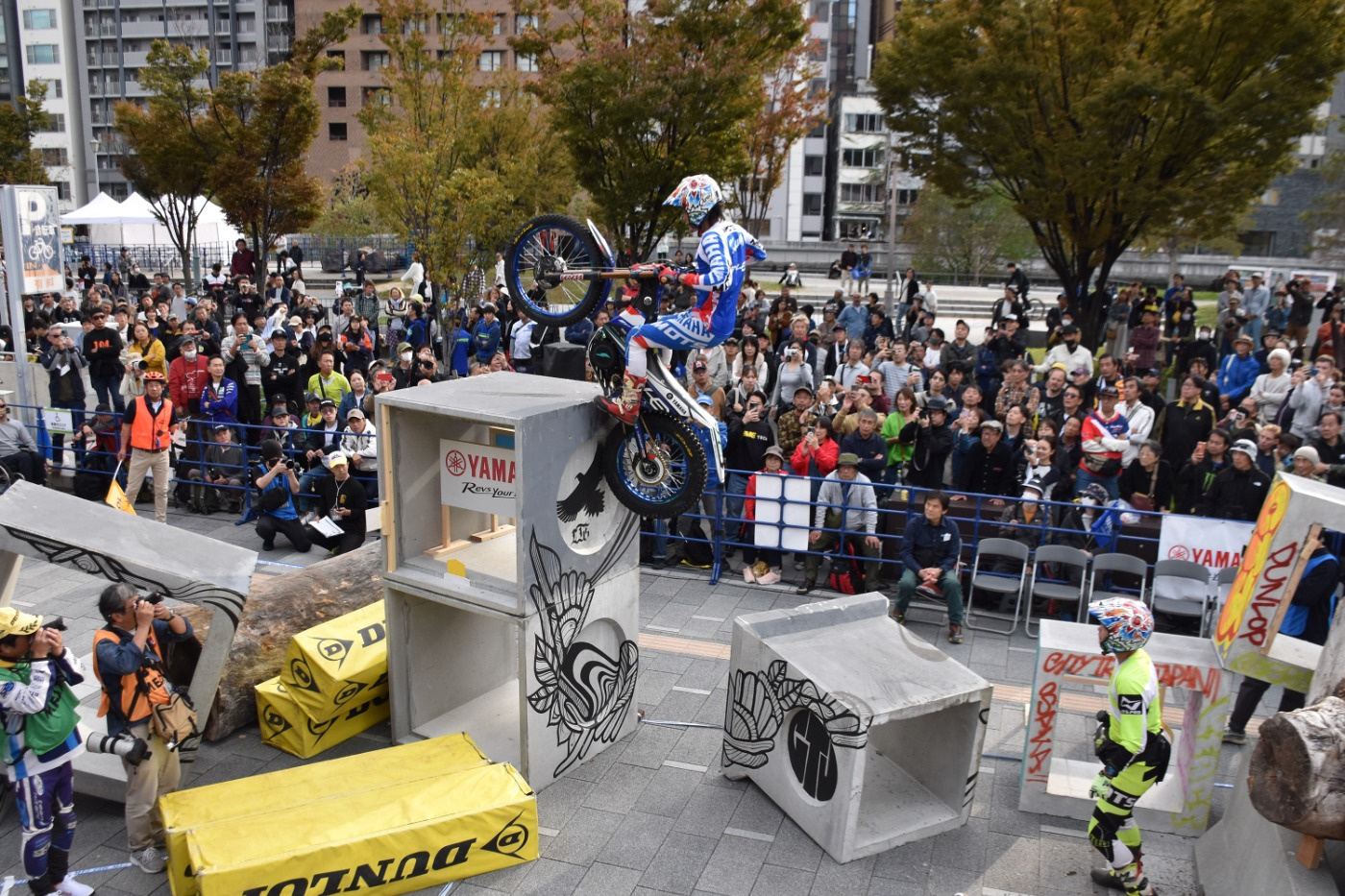 「最終セクションは、自分でも飛ぼうと思っていましたが、『もっと飛べ!』という声が聞こえてきたので、会場の皆さんが盛り上がってくれたらいいなと思って頑張ったら、ちょっと失敗してしまいました。あれで逆転されたので、今後はあのようなミスを二度としないように頑張ります。引き続き応援よろしくお願いします。来年も、皆さんが楽しんでもらえるようなシティトライアルができると思いますので、ぜひ観戦に足を運んでください。そして、他の全日本トライアル会場にも、ぜひ応援に来てください!」