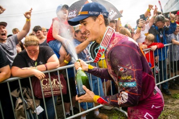 毎年ユナディラでチームUSAが旗揚げされるのは、ここで1987年にモトクロス・デ・ナシオン(旧称)アメリカ大会が初開催された縁があるからだ。ボブ・ハンナ(スズキ)、リック・ジョンソン(ホンダ)、ジェフ・ワード(カワサキ)が地元で優勝を飾った時、ユナディラは壮絶なマディコンディションだった。今大会もまた例に漏れず、予選中からの雨でコースは泥沼と化した。自然の地形を利用したヨーロッパ的なコースは、本来であればハードパックにおけるハイスピードが見ものだが、今回は急勾配の谷底がスタックポイントになるのを避けるため、難所のスクリューユーがショートカットされた。