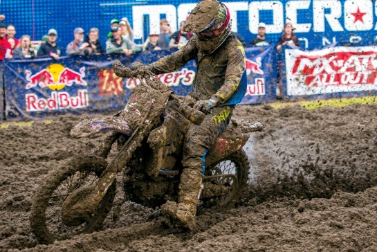 GNCC(グランドナショナルクロスカントリー)の会場、アイアンマン・レースウェイでAMAプロモトクロスが行われるようになって5年目だが、天候に恵まれることが少ない。'14年のマディに始まり、'15~'16年はウェット→ドライ、'17年にようやくベストコンディションが実現したと思ったら、今年はまたしてもマディとなった。