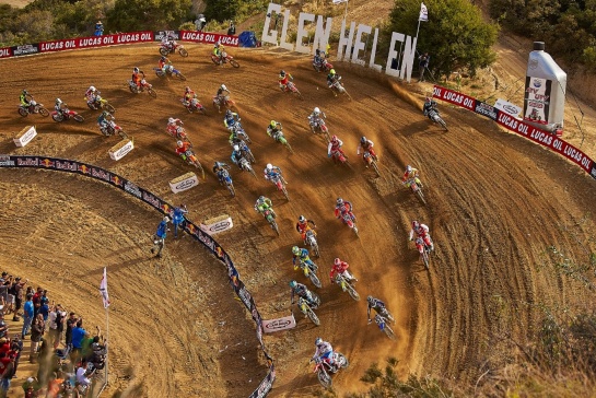 カリフォルニアのモトクロス産業が集まるコロナに程近い、グレンヘレン・レースウェイは、深いサンド路面と急勾配が特徴のマウンテンコース。カーレースの聖地にちなんだ「タラデガ」と呼ばれる巨大なバンクや、登り坂に設けられたステップアップジャンプ、長いダウンヒルなど見どころが多い。今回はジャンプの安全性を考慮し、ステップアップが従来よりも難易度を下げたデザインに変更されている。