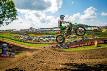 450クラスのヒート1は、ケン・ロクスン(ホンダ)のホールショットで幕を開けた。イーライ・トマック(カワサキ)、ウェストン・パイク(スズキ)、ジャスティン・バーシア(ヤマハ)がその後に続く。前戦で今季1勝目を挙げたマービン・ムスキャン(KTM)は、オープニングラップの半ばで転倒し、20位と出遅れた。