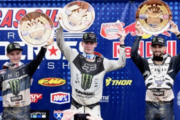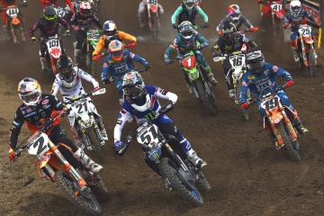 雨中のレースとなった450クラスのヒート2では、マービン・ムスキャン(KTM)がホールショットを取った。オープニングラップでトマックがトップに立った後、2~4周目はロクスンがリーダーを務め、5周目にはトマックが再浮上。中盤以降はひたすら逃げるトマックと、総合優勝を考えた走りに徹するロクスンとの間に大差が生まれた。