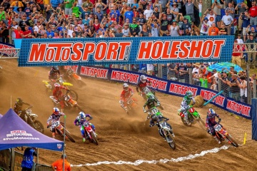 250クラスのヒート1は、アダム・シアンサルーロ(カワサキ)のホールショットで幕を開けた。2位には予選最速のジャスティン・クーパー(ヤマハ)。そしてデリク・ドレイク(KTM)、シェイン・マケラス(KTM)、ブランドン・ハートランフト(ヤマハ)が後に続く。序盤から飛ばすシアンサルーロは、3周で6秒差をつけて確固たるアドバンテージを築いた。