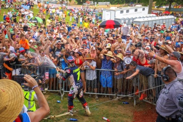 250クラスのヒート1では、アレックス・マーティン(スズキ)がホールショットを取った。2コーナーでアダム・シアンサルーロ(カワサキ)が前に出たが、コース奥のセクションでフェランディスがトップに浮上。1周目のフィニッシュジャンプでは、マーティンと接触したシアンサルーロがコースアウトするハプニングがあったが、転倒せずに復帰した。序盤は接近戦を繰り広げたトップスリーだが、徐々に間隔が開いてフェランディスの独走態勢が固まる。