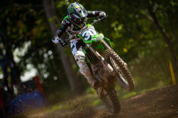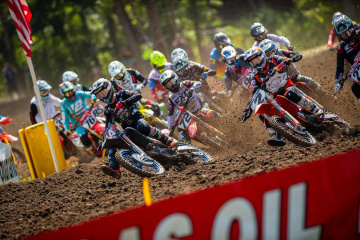 比較的平坦な地形の中にもきついアップダウンが演出されていて、登り坂に設けられたビッグジャンプなどアウトドアモトクロスに欠かせない要素を備えたコースだ。元来はハード路面だったが、おが屑とサンドを大量にミックスさせて土質改善が行われてきた。レースの進行とともにギャップが増え、難易度が上がるコースコンディション。さらに今年は、高温多湿がライダーを苦しめる要素となった。クオリファイングセッションでは、ディラン・フェランディス(ヤマハ)=1分58秒267(450)、ジェット・ローレンス(ホンダ)=2分00秒367(250)が最速だった。