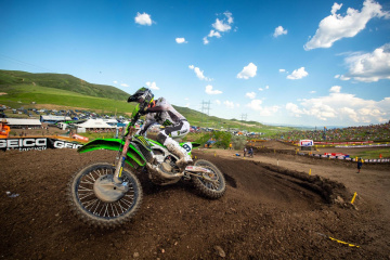 再スタート後のオーダーは、クーパー、J・マーティン、RJ・ハンプシャー(ハスクバーナ)、J・ローレンス。チームメイト同士のトップ争いが熾烈を極めたが、15分を経過した7周目にJ・マーティンがトップに立った。後半になると、クーパーの背後にハンプシャーが接近したが、バトルには至らず。セーフティリードを得たJ・マーティンが、今季2勝目のモトウィンを挙げた。下田丈(カワサキ)は、スタート13位から6位まで追い上げた。