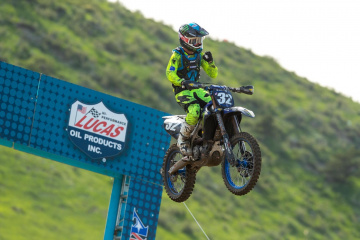 250クラスのヒート2では、またしてもクーパーがホールショットを決めた。J・ローレンス、ハンター・ローレンス(ホンダ)、ジャレット・フライ(ヤマハ)が続いたが、この中からトップ2台が3位以下を引き離す展開となる。激しいトップ争いに決着がついたのは、5周目の高速コーナー。J・ローレンスがクーパーにアタックし、レースリーダーの座を奪った。