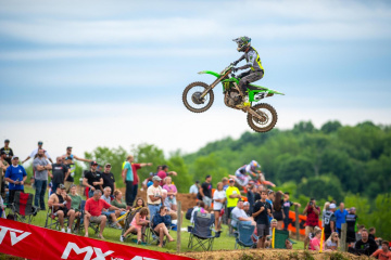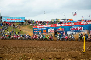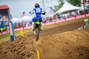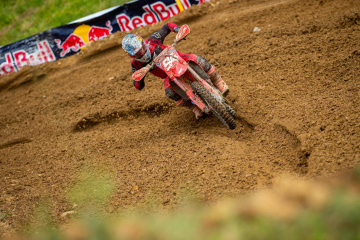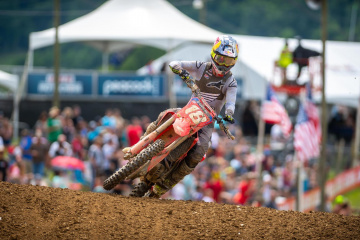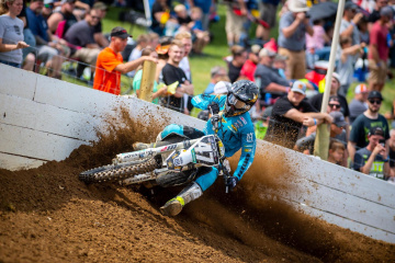 250クラスのヒート1では、ハンター・ローレンス(ホンダ)がホールショットを決めたが、オープニングラップ中の転倒で後方集団に飲み込まれた。リセットされた上位集団は、ジャリク・スウォール(ハスクバーナ)を先頭に、クーパー、RJ・ハンプシャー(ハスクバーナ)、コルト・ニコルス(ヤマハ)。4周目にはここからハンプシャーが抜け出し、約束されたレースリーダーとなった。