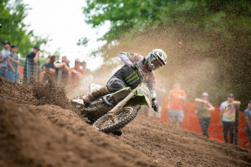 ザ・ウィック338(旧称モトクロス338)に、2年ぶりとなるAMAプロモトクロスが帰ってきた。ここはアメリカ国内でも有数のディープサンドで知られるコースだが、近年は砂の流出などによって硬化が進み、走行ラインの底にハードベースが現れる箇所が増えた。ビジターにとってはトリッキーな路面だが、マサチューセッツ州やコネチカット州のローカルライダーが、スポット参戦して活躍するケースがよくある場所だ。