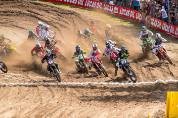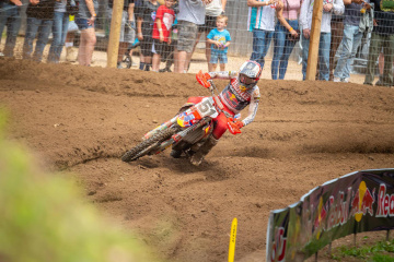 当地では前日の金曜に雷雨に見舞われたが、水はけの良さとコース整備によって、レース日の土曜はベストコンディションとなった。とは言え難易度が下がったわけではなく、走り出せば次第に増えるギャップと滑りやすい路面がライダーを苦しめた。クオリファイングセッションでは、アダム・シアンサルーロ(カワサキ)=2分12秒659(450)、RJ・ハンプシャー(ハスクバーナ)=2分15秒914(250)が、ポールポジションをゲットした。