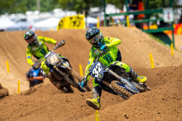 ちなみにこのコースのオーナーは、アレックス・マーティン(ヤマハ)とジェレミー・マーティン(ヤマハ)の両親で、サンドフープスの脇に家がある。クオリファイングセッションでは、ケン・ロクスン(ホンダ)=2分07秒124(450)、ジャスティン・クーパー(ヤマハ)=2分09秒099(250)が最速だった。
