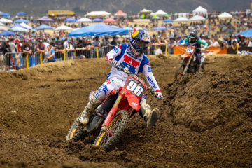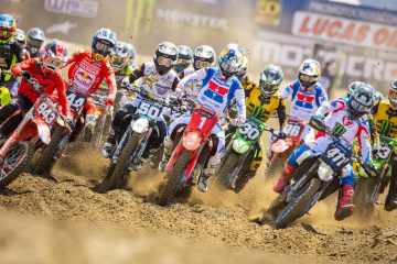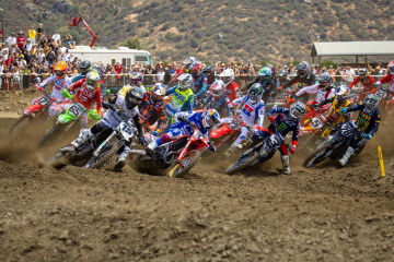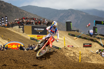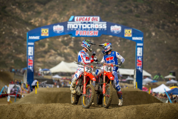 タイムクオリファイでポールポジションを獲得したのは、450=チェイス・セクストン(ホンダ)2分12秒333、250=セス・ハメイカー(カワサキ)2分13秒063。涼しさに恵まれた今大会は、通常よりも路面の乾燥が進まず、程良いトラクションが保たれていた。