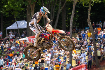 450クラスのヒート1は、トマックのホールショットで始まった。ジョーイ・サバッチー(カワサキ)、ケン・ロクスン(ホンダ)、ジャスティン・バーシア(ガスガス)が続いたが、オープニングから飛ばすトマックが、単独リーダーの座を固める。セカンドグループの後ろにはチェイス・セクストン(ホンダ)が控えていて、ポジションアップを開始した。