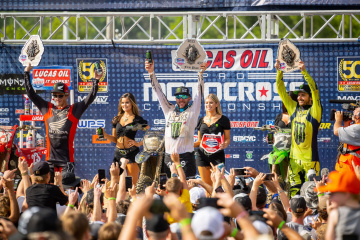 クオリファイングセッションで最速だったのは、450=チェイス・セクストン(ホンダ)2分06秒351、250=ジャスティン・クーパー(ヤマハ)2分08秒584。サンドフープスや長い登り坂など、450の優位性が反映された予選結果になった。
