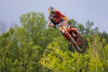 450クラスのヒート2では、ホールショットのディラン・フェランディス(ヤマハ)が2コーナーで転倒。オープニングラップのオーダーは、ローレンス、セクストン、プレシンガーの順に整った。同じ構図の一騎打ちとなったが、最終ヒートにかけるローレンスとセクストンの闘志は別物で、両者は僅差のまま周回を重ねた。