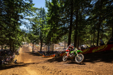 西海岸ワシントン州とオレゴン州のボーダー近くにあるワシューガル・モトクロスパークは、針葉樹に囲まれた美しさが人気のマウンテンコース。今年は晴天に恵まれ気温が30度を超えたが、アメリカ東部よりも湿度が低く、暑さの中にもカラッとした過ごしやすさがあった。