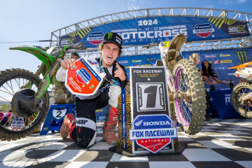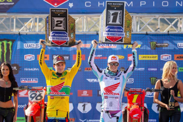 早朝から実施されたクオリファイングセッションの結果は、450=ジェット・ローレンス(ホンダ)=2分18秒467、250=リーバイ・キッチン(カワサキ)=2分22秒285。予選結果には排気量格差というよりも、ディフェンディングチャンピオンの実力が表れていた。