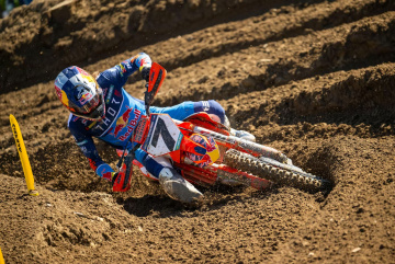 450クラスのヒート2では、ホールショットのクーパーをかわしたアーロン・プレシンガー(KTM)が、オープニングラップのリーダーとなった。ヒート1の勝者セクストンは、3コーナーでスリップダウン。1~2周目の混戦が落ち着くと、上位はプレシンガー、クーパー、J・ローレンス、H・ローレンスというオーダーになった。やがてJ・ローレンスが2位まで浮上したが、ヒート1で痛めた身体の影響でペースの衰えが目立つようになる。