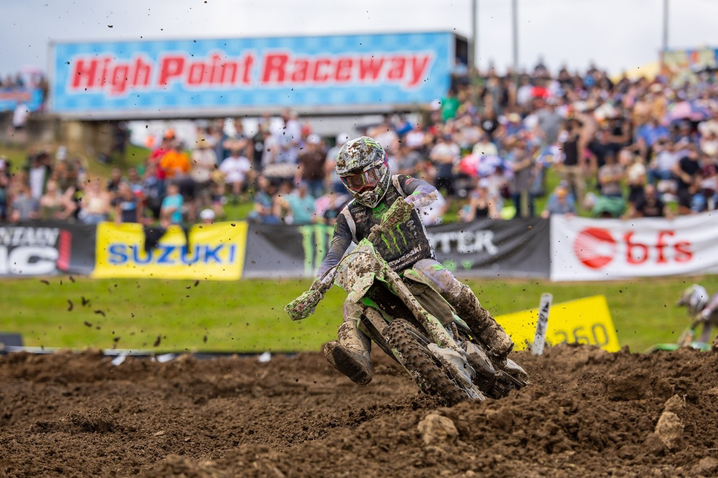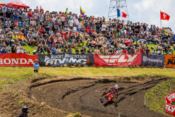 クオリファイングセッションで最速だったのは、、450=2分01秒772=ジャスティン・クーパー(ヤマハ)、250=2分02秒798=ヘイドン・ディーガン(ヤマハ)。ところが雨中のレースとなった450モト2では、トップのベストラップタイムが2分08秒台まで落ちた。