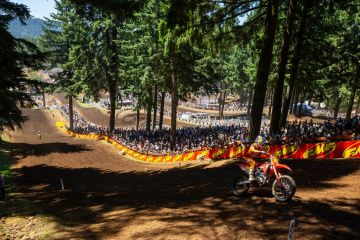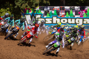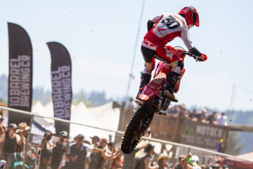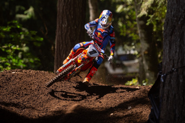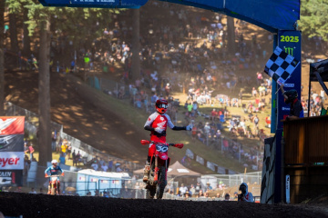 タイムクオリファイでリスト最上段に名を刻んだのは、450=2分10秒869=ジェット・ローレンス(ホンダ)、250=2分14秒412=ギャレット・マーチバンクス(カワサキ)。新設されたビッグジャンプなど、排気量差が生じる要素が増えたが、キャリア初のポールポジションを獲得したマーチバンクスのアタックが際立つ予選だった。