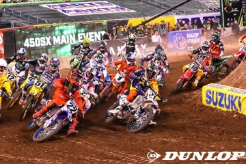 450SXのメインレース(20分+1周)では、ジェイソン・アンダーソン(ハスクバーナ)がホールショットを取り、デイビー・ミルサップス(KTM)、イーライ・トマック(カワサキ)、そして3ポイントのビハインドでトマックとタイトル争い中のダンジーが続いた。