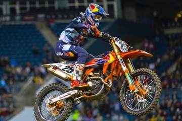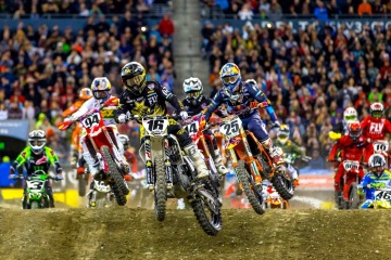 450SXのメインレース(20分+1周)では、ザック・オズボーン(ハスクバーナ)がホールショットを取った。2コーナー先では多重クラッシュが発生し、チャド・リード(スズキ)、ジャスティン・ブレイトン(ホンダ)がリタイアした。オープニングラップでトップに立ったのは、マービン・ムスキャン(KTM)。2周目にはケン・ロクスン(ホンダ)、コール・シーリー(ホンダ)が2~3位に浮上し、オズボーンは後退していった。