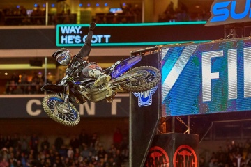 青空の下で行われた公式練習では、セカンドセッションで好タイムが生まれた。ポ-ルポジションは、450SX=ディーン・ウィルソン(ハスクバーナ)45秒281、250SX=ディラン・フェランディス(ヤマハ)45秒907。今大会の注目は、アーロン・プレシンガー(ヤマハ)の代打に起用されたジョシュ・グラント(ヤマハ)だったが、予選から転倒が多くラストチャンスで敗退した。