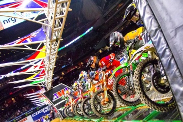 450SXのメインレース1(12分+1周)では、タイムアタックで首位だったケン・ロクスン(ホンダ)が、オープニングラップからトップに躍り出た。ディーン・ウィルソン(ハスクバーナ)、マービン・ムスキャン(KTM)、クーパー・ウェブ(KTM)らが追いかけたが、ロクスンは早々とセーフティリードを築く。トップグループの中では、ムスキャン対ウェブというチームメイト同士の争いが過熱し、5周目にはムスキャンがコースアウト。ウェブの勢いはウィルソンにも及び、13周目には2位に浮上した。しかしロクスンは10秒ほどの独走状態で、トップチェッカーをゲットした。