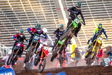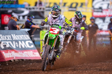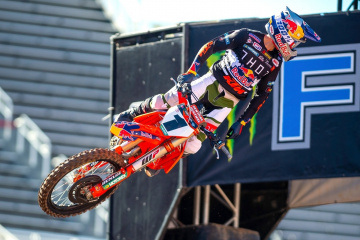 450SXのメインレース(20分+1周)では、ホールショットのケン・ロクスン(ホンダ)をかわしたクーパー・ウェブ(KTM)が、オープニングラップからリーダーとなった。3位以下にはザック・オズボーン(ハスクバーナ)、バゲット、チャド・リード(ホンダ→KTM)が続く。ポイントリーダーのイーライ・トマック(カワサキ)はスタートに失敗し、12位からキャッチアップを開始した。