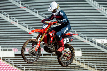 前戦ソルトレイクシティ5が行われた日曜からこの水曜まで、コース造成にかけられる時間は正味2日半しかなかったが、今回は火曜の夜に強い雨が降ったこともあって、コースの大半は前戦のレイアウトを踏襲したものとなった。そのため450SXクラスではテクニカルなセクションに対するライダーの習熟度が高く、タイムアタックは僅差でしのぎを削る接戦だった。