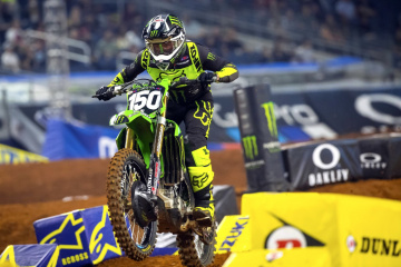 450SXのメインレース(20分+1周)では、ディーン・ウィルソン(ハスクバーナ)がホールショットを取ったが、オープニングラップの先陣争いでクーパー・ウェブ(KTM)、ディラン・フェランディス(ヤマハ)が前に出た。目まぐるしいポジションの入れ替えが行われた後、大勢が定まったのは6周目。ウェブを先頭に、ジャスティン・バーシア(ガスガス)、チェイス・セクストン(ホンダ)、ウィルソンが上位集団を形成する。フェランディスは7周目の転倒でリタイアした。