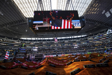ダラス・カウボーズの本拠地、アーリントンのAT&Tスタジアムが第10~12戦の会場。今年のレースカレンダーには、COVID-19パンデミック対策として変則的なトリプルヘッダー(土/火/土)が含まれているが、ここアーリントンも例外ではない。リトラクタブルルーフを備えたAT&Tスタジアムは、屋根の開閉によって外光を採り入れたり換気が行えるメリットがあるので、コース設営時に土に含まれた水分の調整がしやすい。
