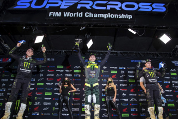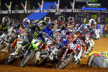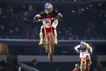 450SXのメインレース(20分+1周)では、ケン・ロクスン(ホンダ)がホールショットを取り、クーパー・ウェブ(KTM)、ジャスティン・バーシア(ガスガス)、イーライ・トマック(カワサキ)が続いた。ポールシッターのセクストンは、5位に浮上した直後に転倒リタイア。4周目にはトマックとバーシアが入れ替わったが、このトップ4は各々1秒に満たない近さで周回を重ねた。