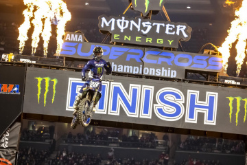 レース中盤、シーズンオフの負傷が完治していないシアンサルーロが衰え、ジャスティン・バーシア(ガスガス)、ジェイソン・アンダーソン(カワサキ)、クーパー・ウェブ(KTM)からなるセカンドグループが再編された。しかし、10秒以上も先を行くロクスンの優位は磐石だ。終盤になると、荒れたコースやライバルとの競り合いに負け、転倒するライダーが続出。そんな混乱をくぐり抜けたのが、2位ウェブ、3位バーシア。ファイナルラップまでもつれ込んだ4位争いは、セクストンを攻略したマービン・ムスキャン(KTM)が物にした。レースの主導権を最後まで維持したロクスンは、荒れた開幕戦の勝利をゲットした。