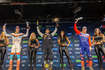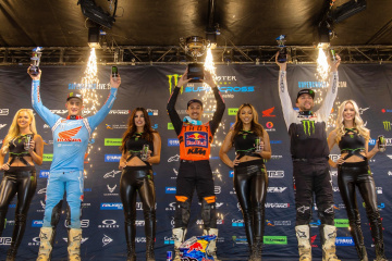 タイムクオリファイでポールポジションを獲得したのは、450SX=マルコム・スチュワート(ハスクバーナ)53秒102、250SX=RJ・ハンプシャー(ハスクバーナ)53秒630。いずれも1回目のセッションで記録されたものだが、時間の経過による路面状況の悪化が表れた予選となった。