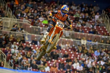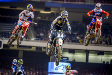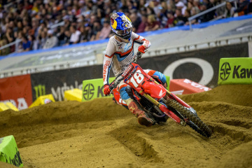 シアトルSX後の1週オフが明け、セントルイスSXでシリーズが再開。ここから先の終盤戦はユニークな趣向を凝らしたレースが続くが、今大会はシーズン3度目のトリプルクラウンイベント。450SX×3レース、250SX×3レースの総合リザルトに対して、各クラスのシリーズポイントが付与される仕組みだ。