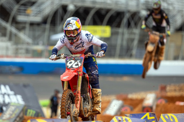 デイスケジュールに基づき、15時に予選ヒートがスタート。450SXのメインレース(20分+1周)では、ジャスティン・バーシア(ガスガス)がホールショットを決め、セクストン、ジェイソン・アンダーソン(カワサキ)、クーパー・ウェブ(KTM)が続いた。2周目にはセクストンが前に出たが、わずか1周のうちに転倒。この機にアンダーソンがリーダーとなった。