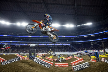 摂氏30度オーバーのアナハイムから氷点下のミネアポリスに移動し、シリーズ中盤戦に突入したスーパークロス。固定式採光ルーフを備えたUSバンク・スタジアムでは、通常よりも3時間早められたタイムスケジュールでプログラムが進行し、ナイターとは趣が異なる独特な大会となった。