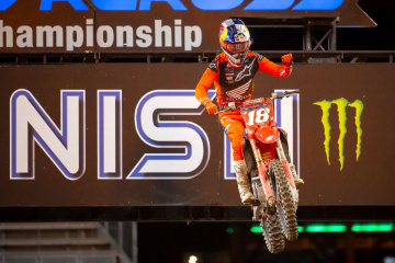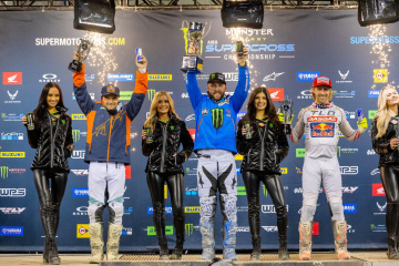 ハーフウェイポイントまでは、トップを走るセクストンがレースを掌握したかに見えたが、11周目の転倒によって4位に後退。優勝候補には、トマックとウェブが名乗りを上げた。ランキング首位を争う両者だったが、今大会ではトマックが終始2~3秒差を保ち、ウェブをリードした。終盤になると、ジャスティン・バーシア(ガスガス)が3位に躍進。さらに上位に迫る勢いもあったが、ポジションアップはここまで。トマックが今季6度目の優勝を飾り、ウェブ、バーシアがポディアムの両脇に立った。この結果、ポイントスタンディングでは、トマックとウェブが同点首位となっている。