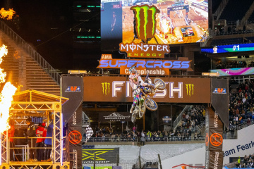 450SXのメインレース(20分+1周)では、ケビン・モランズ(KTM)がホールショットを決めたが、オープニングラップ途中で転倒。セクストンがトップに立ち、ケン・ロクスン(スズキ)、イーライ・トマック(ヤマハ)、アダム・シアンサルーロ(カワサキ)、クーパー・ウェブ(KTM)が続く上位陣になった。セクストンがリードを広げる一方、セカンドグループでは激しいポジション入れ替えの末、6周目にはトマックが2位に落ち着いた。