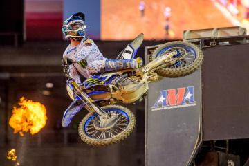 今回のコースレイアウトは、長いスタートストレートが特徴的だ。フットボールフィールドの120ヤード(約110メートル)をフルに活用した長さがあり、どのゲートからでもホールショットを狙えそうだった。タイムアタックでは、路面状況が良くなったセカンドセッションでの勝負となった。450SX=チェイス・セクストン(ホンダ)50秒704、250SX=ジェット・ローレンス(ホンダ)51秒027、いずれも馴染みのポールシッターが本領を発揮した。