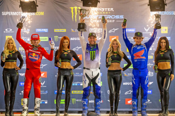 450SXのメインレース1(12分+1周)は、イーライ・トマック(ヤマハ)のホールショットで始まった。その背後にはクーパー・ウェブ(KTM)が続き、トップ争いは多くが願っていた形となった。今大会にはトマックとウェブが同点首位で臨んでいて、両者がレッドナンバープレートを装着していたからだ。トマックが逃げれば、ウェブが追い詰める。2台の間隔は1秒強の差で推移したが、最終的にはトマックが1.5秒のリードでウェブを振り切った。3位ジャスティン・バーシア(ガスガス)、そしてチェッカー目前でケン・ロクスン(スズキ)をかわしたセクストンが、僅差の4位争いを制した。