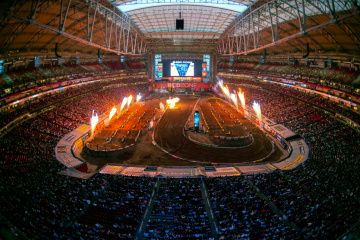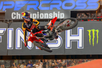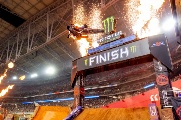 フェニックス(グレンデール)のステイトファーム・スタジアムは、ダラス(アーリントン)のAT&Tスタジアムとともに、トリプルクラウンの開催地として定着している。短いインターバルで決勝が6レース(250SX×3、450SX×3)立て続けに行われるフォーマットなので、コースとパドック間のスムーズな導線や、悪天候に強いリトラクタブルルーフを備えている点がその理由だろう。