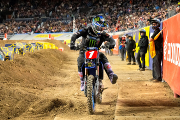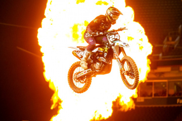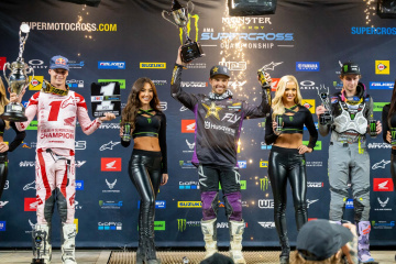 タイムクオリファイは、最後のセッションが勝負となった。450SXではチェイス・セクストン(ホンダ)の43秒968が最速、250SXではジェット・ローレンス(ホンダ)が43秒893で予選首位を得た。フットボール用フィールドに作られたコースは、実測で1周498メートル。今シーズン最短のレイアウトで、周回数が多くなることが予想された。