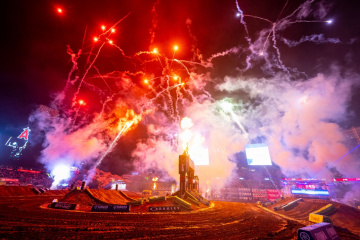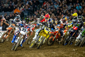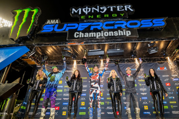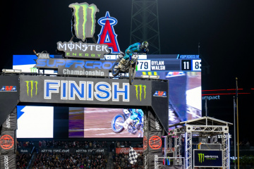 トリプルクラウンは全17戦からなるシリーズにアクセントをつける演出で、今年はこのアナハイム2、ダラス(アーリントン)、フェニックス(グレンデール)に限定されている。450SX×3レース、250SX×3レースの総合結果によって、各クラスの順位とチャンピオンシップポイントが決まるフォーマット。レース時間の短さから激しいバトルが生まれ、スリリングな展開になることが多い。