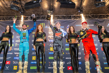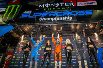 19時からのナイトレースに進む40台を決めるタイムドプラクティスでは、450SX=チェイス・セクストン(ホンダ)50秒320、250SX=マックス・アンスティ(ホンダ)52秒128が最速レコード。250SXでは今回がイースト開幕戦という事情もあり、慎重な構えでタイムアタックに臨むライダーが多かった。