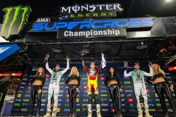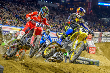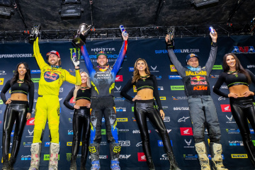 450SXのメインレース(20分+1周)は、ケン・ロクスン(スズキ)のホールショットで始まった。クーパー・ウェブ(KTM)、セクストン、アダム・シアンサルーロ(カワサキ)が続いてトップグループを形成。ポイントリーダーのイーライ・トマック(ヤマハ)は、オープニングラップ11位と出遅れた。3周目にはセクストンが2位に浮上したが、7周目のクラッシュで脱落。先頭のロクスンは、3秒前後のリードを得て快走した。